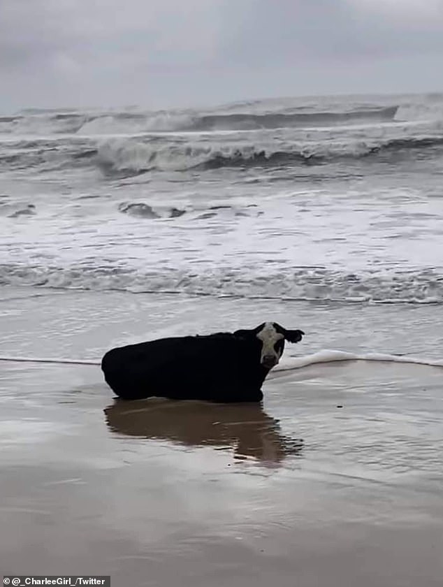 “Con bò này quá may mắn khi nó chọn đúng bãi biển có đông người tụ tập để trôi dạt vào”, một phụ nữ viết trên mạng xã hội Twitter.