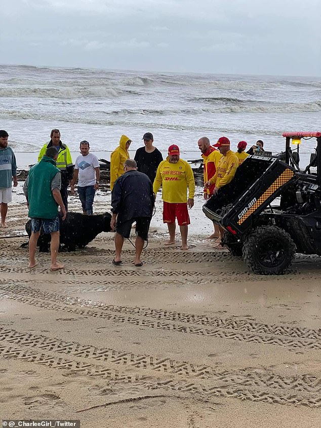 Một nhóm tình nguyện viên có mặt tại bãi biển Old Bar để đưa con vật từ bờ biển đến một bãi cỏ an toàn hơn. “Có một đàn bò 22 con bị mất tích ở gần đây, có lẽ đây là một trong số chúng”, người phụ nữ nói.