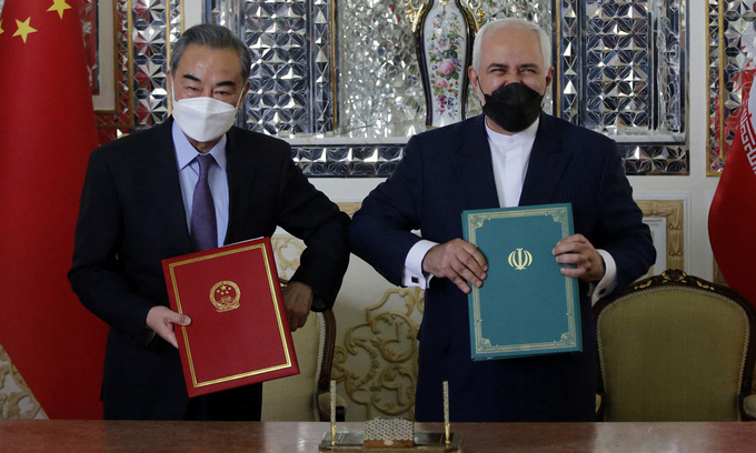 Trong thỏa thuận được Ngoại trưởng Vương Nghị và người đồng cấp Javad Zarif ký hôm 27/3, Trung Quốc đồng ý đầu tư 400 tỷ USD vào Iran trong vòng 25 năm, trên các lĩnh vực như ngân hàng, viễn thông, cảng biển, đường sắt, y tế và công nghệ thông tin.