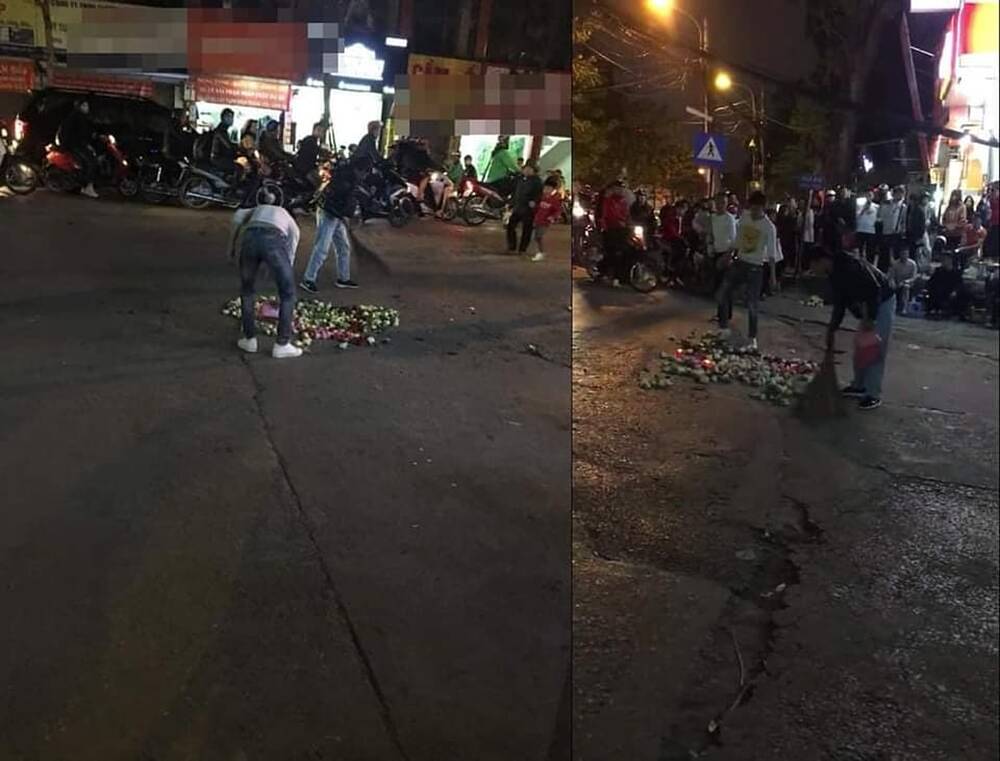 Để thể hiện lòng thành, anh chàng còn mua rất nhiều hoa, bỏ công sức đứng giữa đường xếp chúng thành tên viết tắt của cả hai kèm theo một trái tim lớn chính giữa. Thanh niên này còn xếp nến xung quanh, chỉ cần đợi bạn gái xuất hiện là “lên đèn” để có ngay một không gian lung linh. Màn tỏ tình tốn kém ngay giữa đường của anh chàng thu hút nhiều dân tình đến “hóng hớt”.