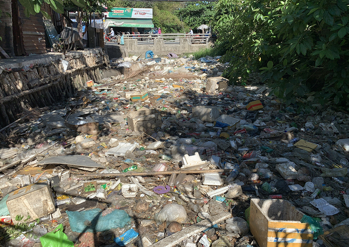 Một đoạn kênh Hy Vọng bị ngập rác, tháng 3/2021. Ảnh: Quỳnh Trần.