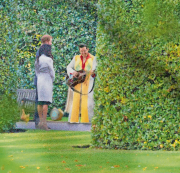 Trong bức ảnh cũng hiện diện Tổng giám mục Justin Welby như lời nữ Công tước kể và ông còn đội tóc giả mô phỏng lại huyền thoại nhạc rock Elvis Presley. Sau đó, Tổng giám mục còn biểu diễn vài bài hát của Elvis cho cặp đôi nghe.