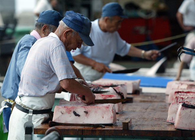 Thịt cá voi được phân loại sau mỗi chuyến đi săn.