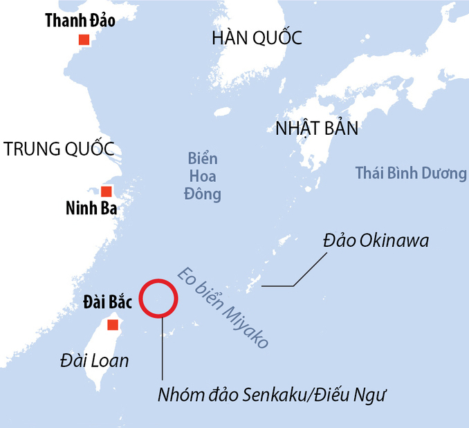 Vị trí eo biển Miyako và nhóm đảo Senkaku/Điếu Ngư. Đồ họa: AFP.