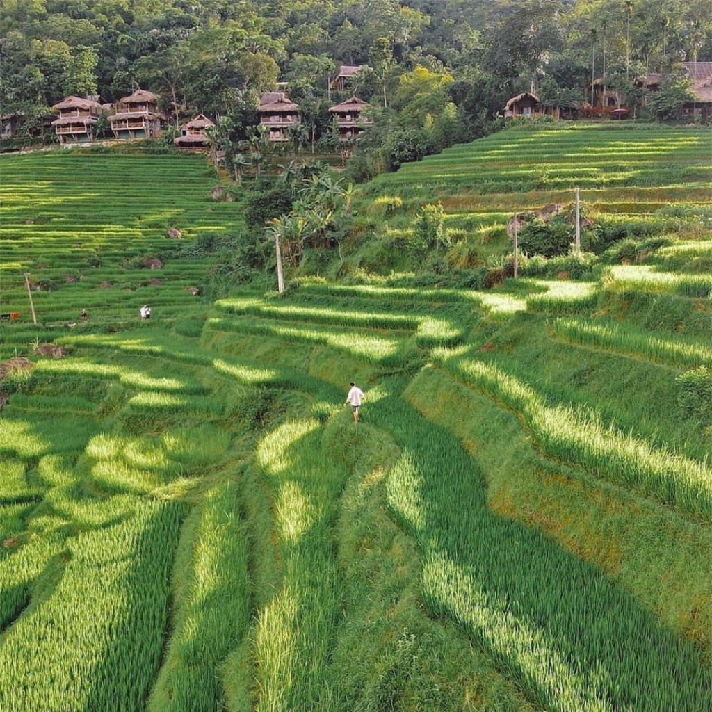 Lúc này, những thửa ruộng bậc thang sắp vào vụ gặt, cung cấp phông nền lung linh để sống ảo. Điểm đến này phù hợp cho những chuyến nghỉ dưỡng ngắn ngày. Các khu nghỉ dưỡng sinh thái là điểm lưu trú được du khách ưa chuộng tại đây bởi cảnh đẹp, nhiều tiểu cảnh phục vụ check-in và chất lượng dịch vụ tốt.