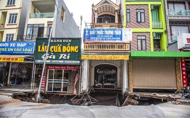 Anh Tạ Viết Chiến, chủ một ngôi nhà bị ảnh hưởng cho biết, vào chiều qua sau khi nghe 2 tiếng động lớn, anh chạy ra ngoài kiểm tra thì thấy toàn bộ vỉa hè trước cửa nhà đã sụt lún, cây lộc vừng cao khoảng 6m ở trước cửa và một chiếc máy khoan giếng cũng bị cuốn xuống hố.