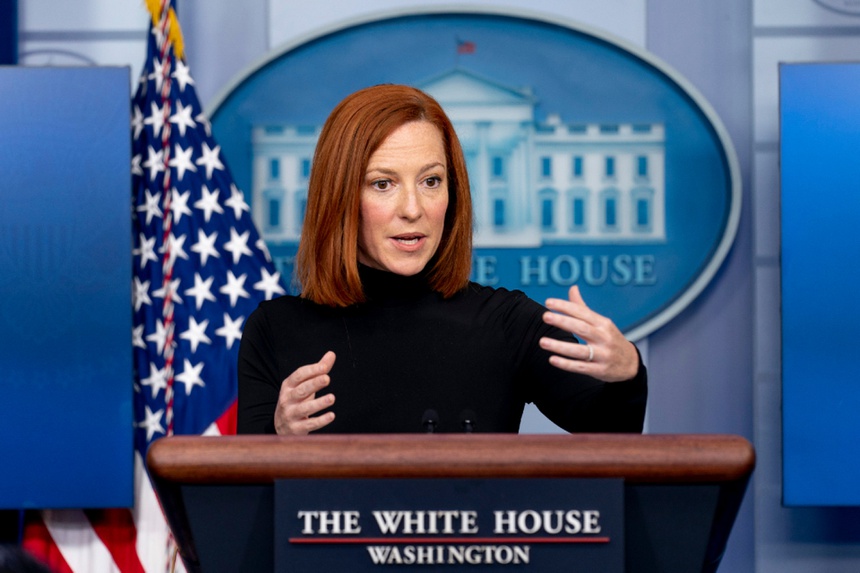 Thư ký báo chí Nhà Trắng Jen Psaki đã 4 lần trả lời câu hỏi Kacey Montagu, người được xác định là giả mạo. Ảnh: AP.