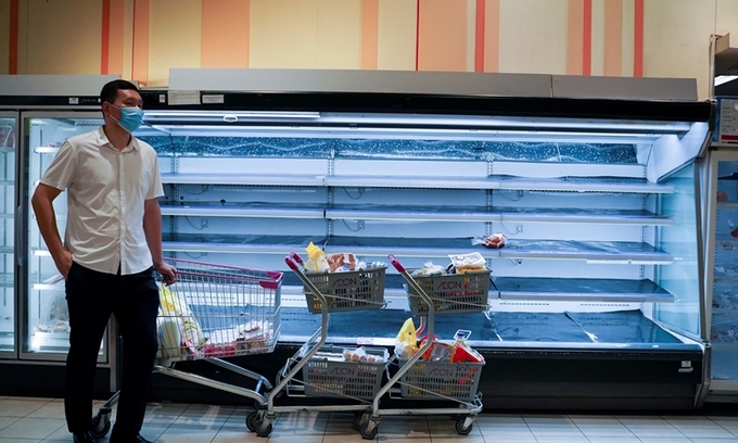 Cửa hàng tiện lợi Super Duper trong khu Toul Tom Poung còn hết sạch xe đẩy và giỏ hàng, trong khi người dân vẫn xếp hàng dài giữa các lối đi. Tại Asia Express, một cửa hàng tạp hóa được cộng đồng người Hoa ưa chuộng, cũng rơi vào tình trạng quá tải.
