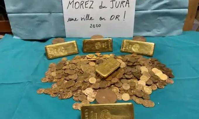Lãnh đạo thị trấn Morez bối rối khi phát hiện 5 thỏi vàng, 1.000 đồng tiền vàng trị giá hàng trăm nghìn Euro trong một ngôi nhà cũ.
