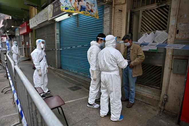Hong Kong phong tỏa tòa nhà dân cư vì phát hiện ca nhiễm mới có liên quan đến biên chủng nguy hiểm. Ảnh: AFP.