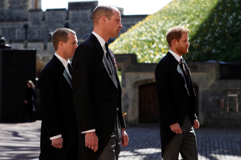 Khi đi theo linh cữu vào nhà nguyện St. George, Hoàng tử William sẽ di chuyển lên trước, đứng song song với Peter Phillips; trong khi đó, Hoàng tử Harry đứng ở hàng sau. Khi buổi lễ bắt đầu, Hoàng tử Harry và Hoàng tử William cũng ngồi đối diện nhau ở hai bên hàng ghế. Ảnh: Reuters.
