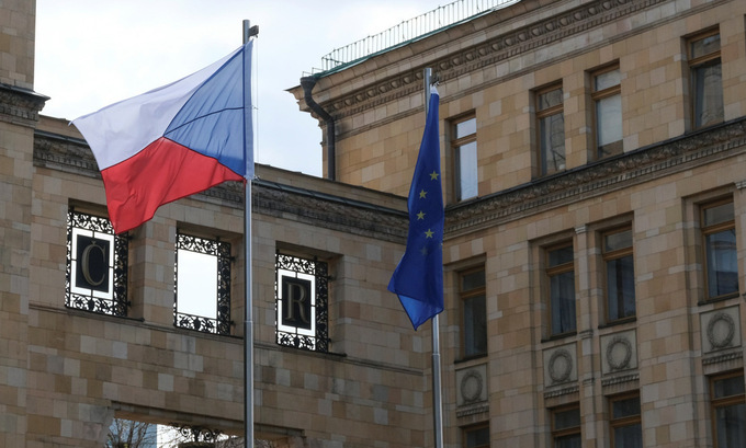 Cờ Czech và Liên minh châu Âu trong đại sứ quán Czech ở Moskva hôm 18/4. Ảnh: Reuters.