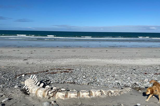 Một người phụ nữ Scotland đã phát hiện ra một bộ xương khổng lồ bị trôi dạt vào bãi biển hẻo lánh của Nam Uist và chị gái của cô đã đưa bức hình lên Twitter để tìm câu trả lời.