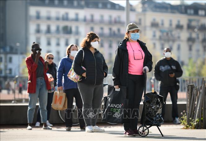 Người dân đeo khẩu trang phòng dịch COVID-19 tại Geneva, Thụy Sĩ ngày 16/4/2020. Ảnh: AFP/TTXVN
