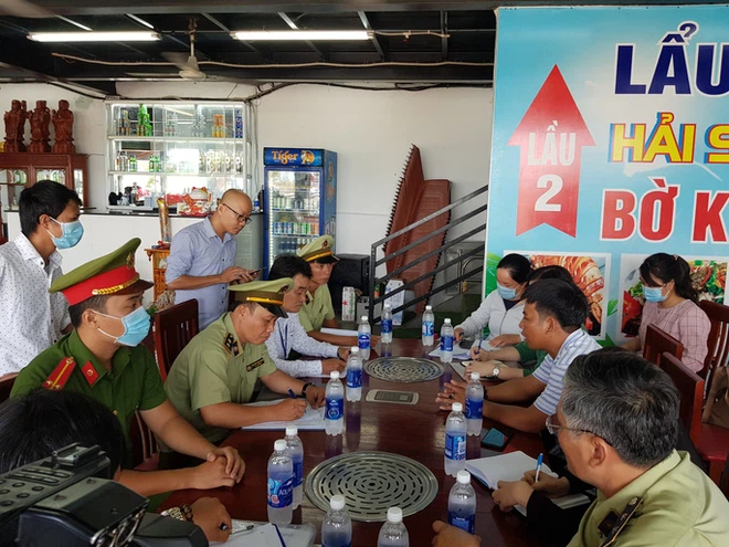 Đoàn kiểm tra của TP Nha Trang làm việc với nhà hàng hải sản
