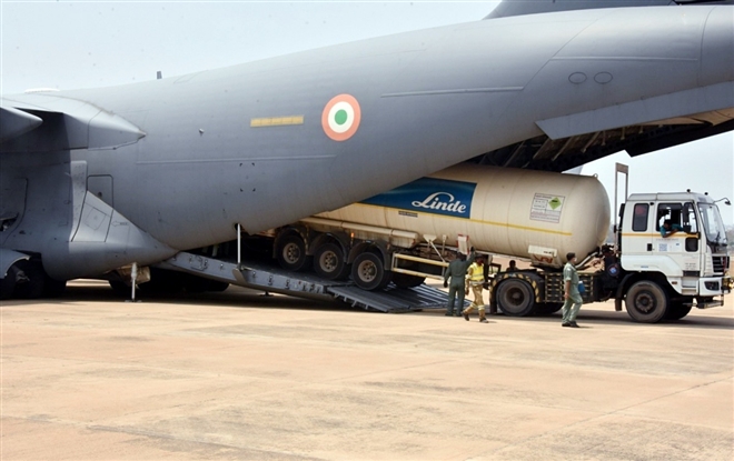 Bộ trưởng Bộ Đường sắt Piyush Goyal cho biết chính phủ chỉ đạo tăng các chuyến tàu tốc hành chở oxy y tế đến New Delhi để đáp ứng tình trạng thiếu hụt tại các bệnh viện. Không quân cũng được điều động giúp vận chuyển nhân lực và vật tư y tế, như bình dưỡng khí, đến khu vực cần thiết.