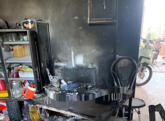 Bên trong phòng bếp chạy rụi nhiều đồ đạc