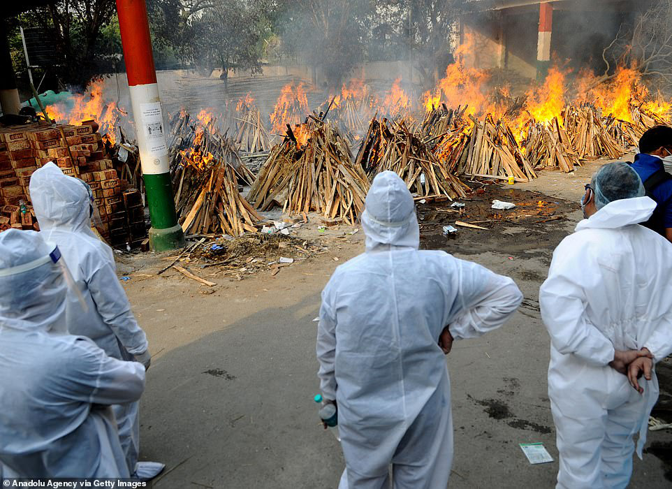 Ấn Độ đang bị nhấn chìm trong cơn sóng thần Covid-19. Các bệnh viện thiếu giường nằm và máy thở ôxy, dẫn đến tỷ lệ tử vong cao. Người được chẩn đoán mắc COVID nhảy từ trên mái nhà xuống trong tuyệt vọng. Các nhà hỏa táng không thể ứng phó được nên thi thể nạn nhân đại dịch được đốt ngay trong các bãi đậu xe và trong vườn.
