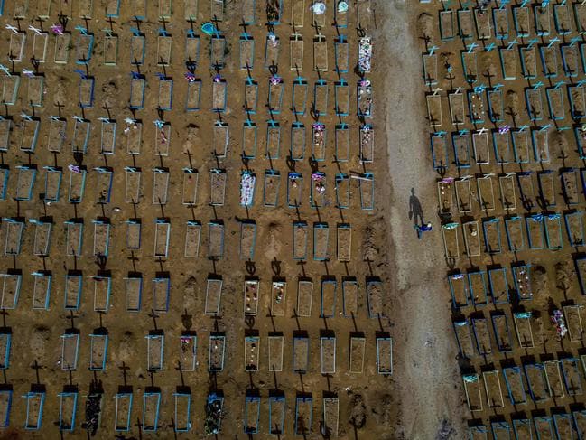 Những ngôi mộ của nạn nhân COVID-19 trên đường đi của nghĩa trang Nossa Senhora Aparecida ở Manaus, Brazil, vào ngày 29 tháng 4 năm 2021. Ảnh: Michael Dantas / AFP