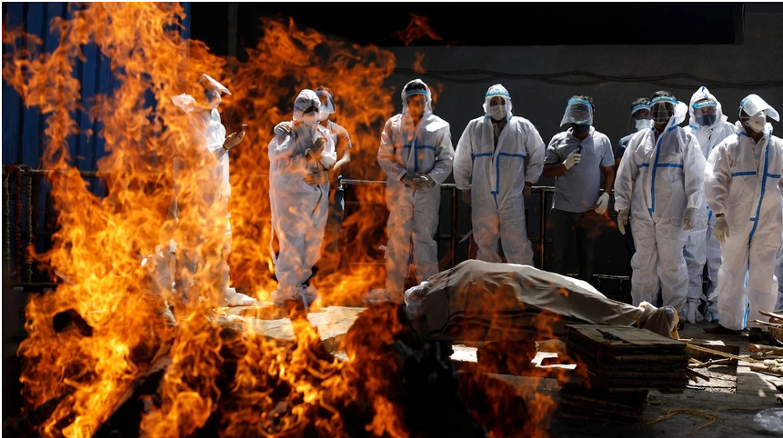 Thi thể người tử vong vì Covid-19 được hỏa thiêu ở Ấn Độ. Ảnh: AP.