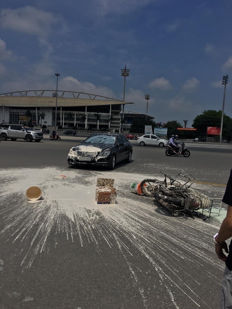 Sự việc xảy ra vào khoảng 10 giờ 30 phút sáng ngày 3/5. Thời điểm đó, một người đàn ông điều khiển xe máy sau khi va chạm với xe Mercedes đã bị văng xa khoảng 3m. Lúc này, nhiều thùng sơn trên xe máy đổ ra đường, nước sơn lênh láng khắp mọi nơi, thậm chí còn văng cả lên xe ô tô.
