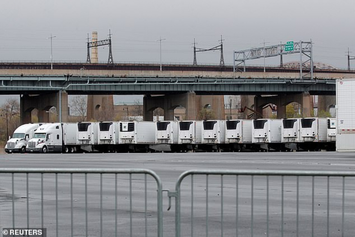 Hàng trăm thi thể nạn nhân Covid-19 ở Mỹ vẫn chất trong xe đông lạnh từ tháng 4. Ảnh: Reuters