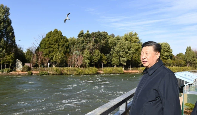 Chủ tịch Trung Quốc Tập Cận Bình thị sát khu vực hồ Dianchi, tỉnh Vân Nam, tháng 1/2020 (Ảnh: Xinhua)