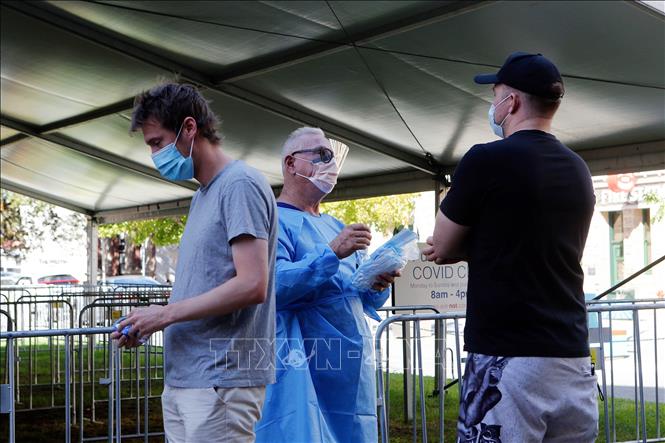 Nhân viên y tế làm việc tại trung tâm xét nghiệm COVID-19 ở Perth, Tây Australia, ngày 24/4/2021. Ảnh: THX/ TTXVN