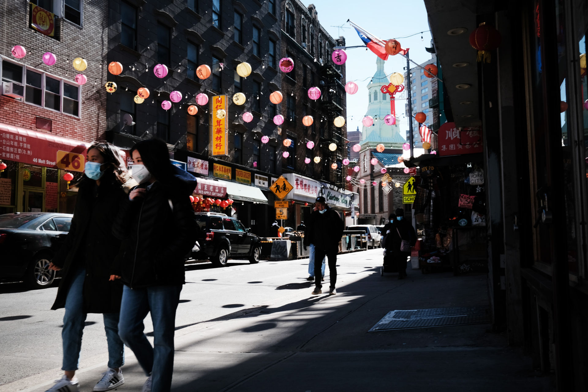 Chinatown New York vắng khách trong những tháng đầu năm 2021. (Hình: Spencer Platt/Getty Images)