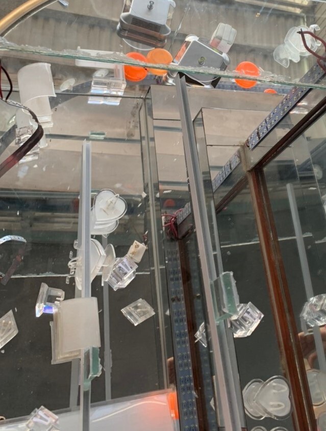 Tên trộm sau đó khoá ngoài phòng ngủ của vợ chồng chủ tiệm, cạy tấm kính tủ trưng bày lấy toàn bộ vàng.
