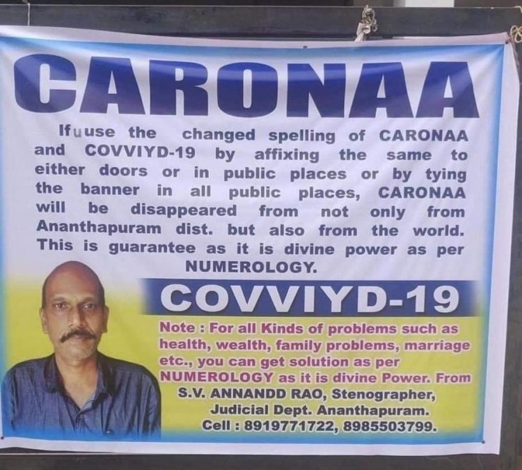 SV Annandd Rao - một người chuyên viết tốc ký và tin vào sức mạnh của thần số học, sống tại quận Ananthapuram, bang Andrash Pradesh, Ấn Độ - tin rằng chỉ cần đánh vần sai từ “COVID-19” và “Corona” cũng có thể loại bỏ dịch bệnh không chỉ ở quê hương ông mà còn trên toàn thế giới.