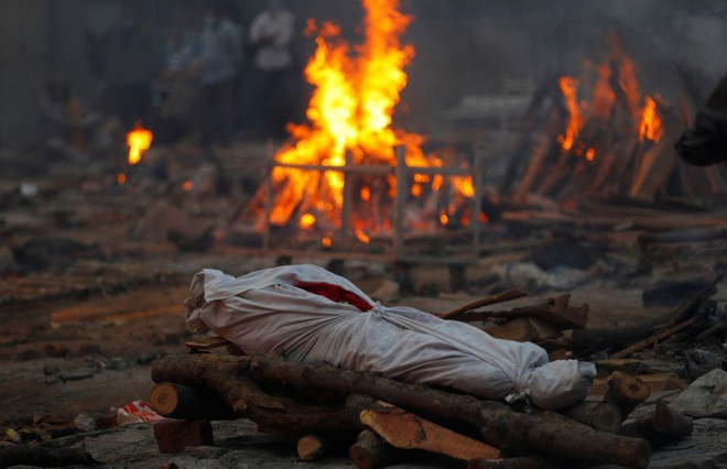 Thi thể người chết vì Covid-19 ở lò hỏa táng tại New Delhi, Ấn Độ. Ảnh: Reuters.