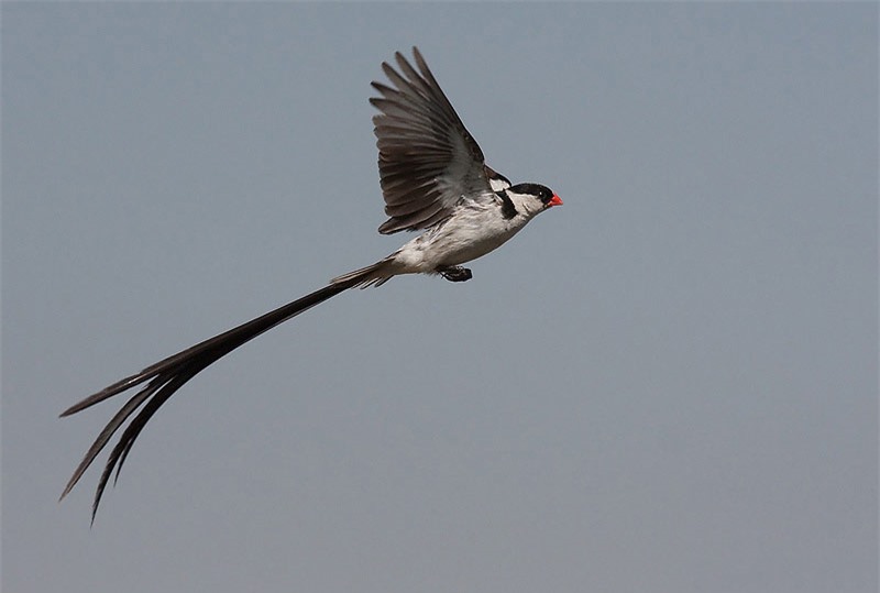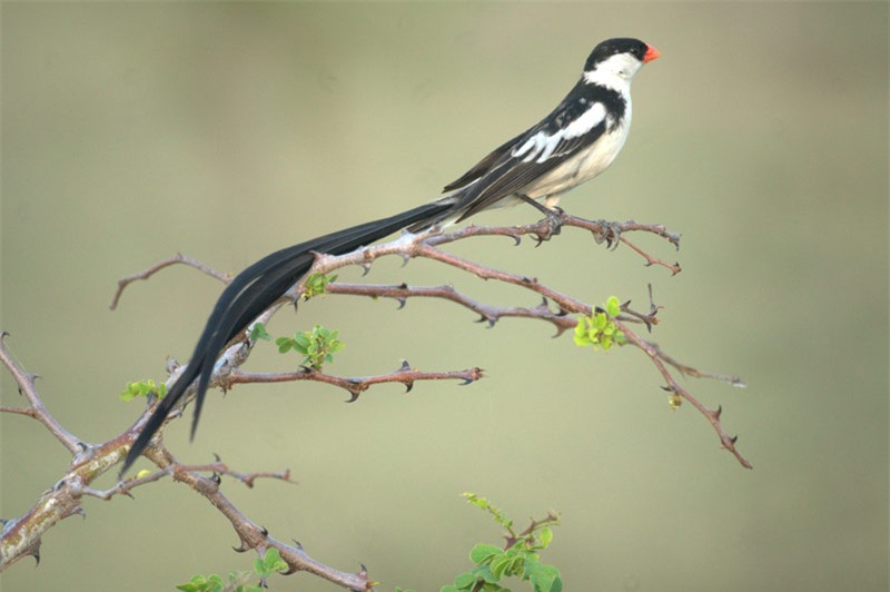 Đuôi của chim trống Vidua Macroura thường rất dài và đẹp.