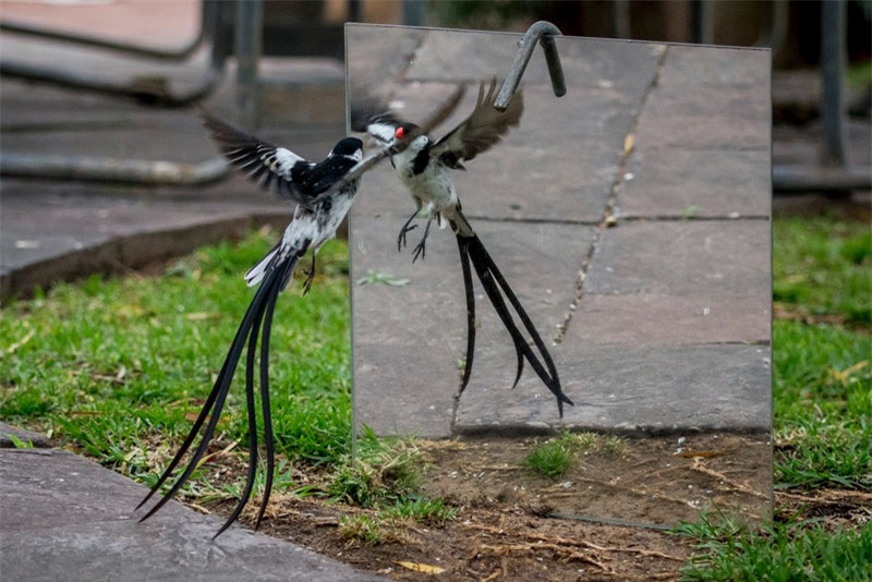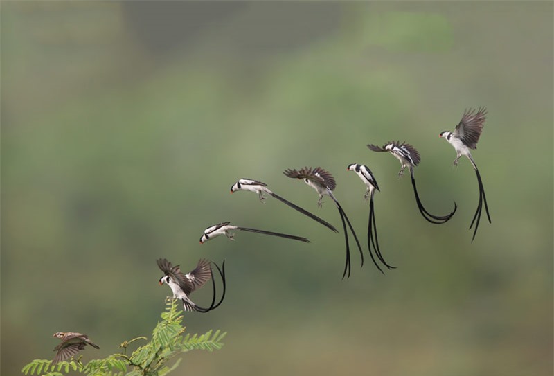 Chú chim trống Vidua Macroura đang tìm mọi cách "dụ dỗ" bạn tình.