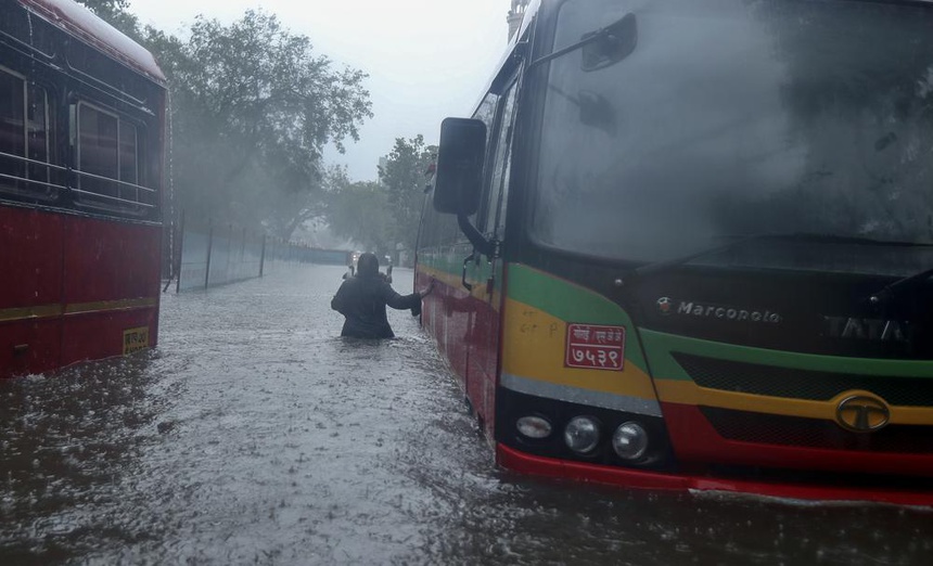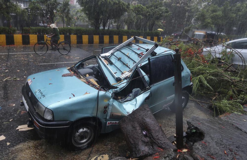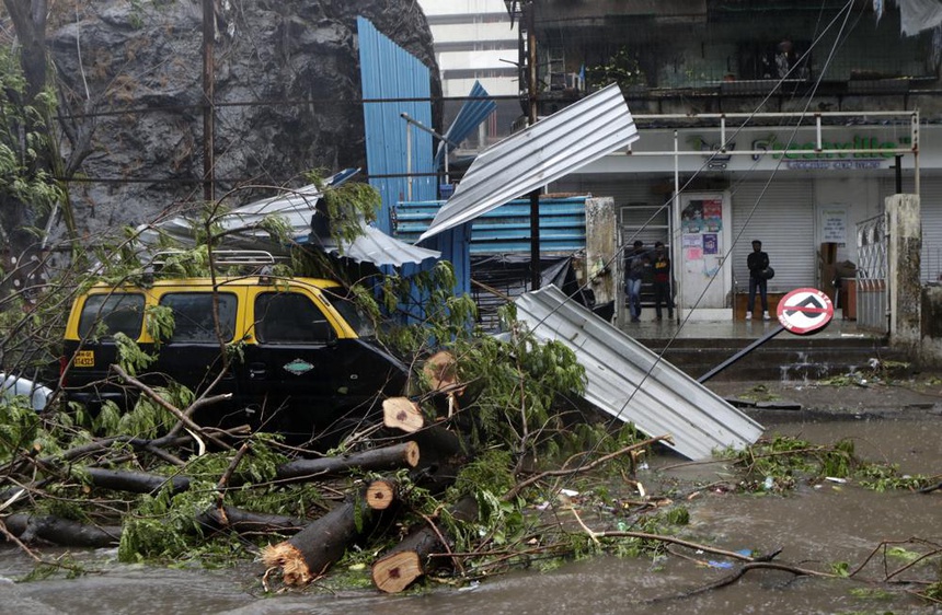 Tại bang Maharashtra, 6 người đã thiệt mạng vì các lý do liên quan tới bão, Press Trust đưa tin. Thủ phủ Mumbai hứng chịu mưa lớn và gió giật mạnh. Nhà chức trách thành phố đã phải đóng cửa sân bay chính ở Mumbai. Ảnh: AP.