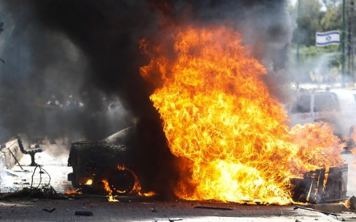 Ô tô Israel trúng rocket của Hamas. Ảnh: Reuters.
