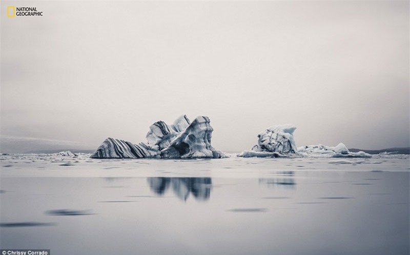 Những tảng băng trở nên xám xịt do bầu trời âm u ở Iceland. Ảnh: Chrissy Corrado.