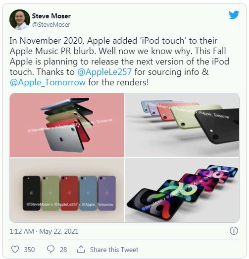 Theo tiết lộ từ Steve Moser, cây bút kỳ cựu của MacRumors, người nổi tiếng với những nhận định có độ chính xác cao về các sản phẩm công nghệ đình đám sắp ra mắt, thì có nhiều lý do thuyết phục để tin rằng Apple sẽ trình làng một mẫu iPod Touch thế hệ mới ngay trong năm nay.