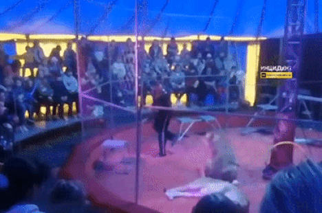 Old  Default Hãi hùng cảnh sư tử vồ huấn luyện viên khi đang biểu diễn ở rạp xiếc Nga
