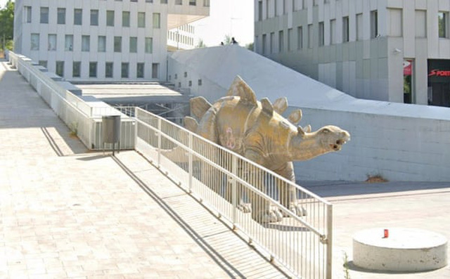 Tượng khủng long ở thị trấn Santa Coloma de Gramenet, ngoại ô Barcelona. Ảnh: Google Maps