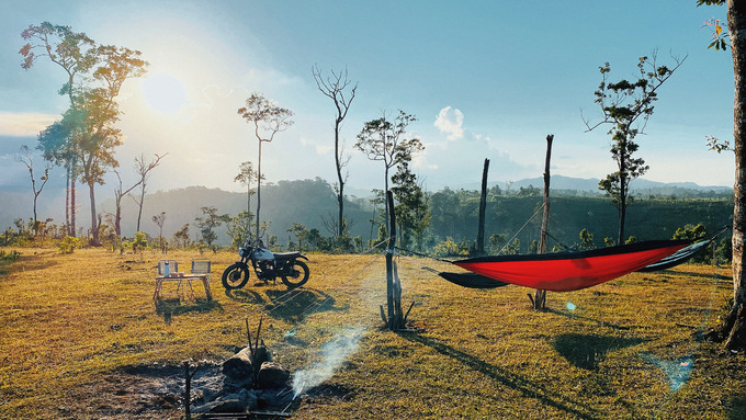 Do công việc đang tạm dừng vì Covid-19, anh Thái Hoàng (TP HCM) cũng đi cắm trại mỗi tuần, vừa để thư giãn, vừa để phục vụ cho công việc làm tour trekking sau khi dịch bệnh được kiểm soát. Anh thường đi cắm trại cùng bạn gái, hoặc vài người bạn có chung sở thích. Tiêu chí để lựa chọn các điểm đến anh là nơi vắng người, gần thiên nhiên và không xa TP HCM, để có thể đi bằng xe máy.