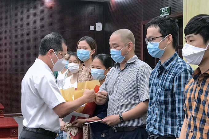 "Chúng tôi trân trọng và tuyên dương tinh thần tự nguyện của các anh chị em y bác sĩ, những người ở tuyến đầu trong cuộc chiến chống covid của Đà Nẵng", ông Quảng nói và đề nghị ngành y tế tạo điều kiện, động viên gia đình của những thành viên trong đoàn để mọi người yên tâm công tác.