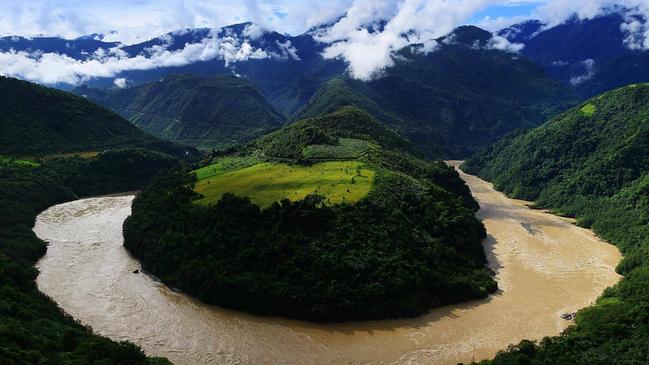 Trong hẻm núi sâu nhất và dài nhất thế giới, sông Yarlung Tsangpo dài 3.000km chảy qua Trung Quốc, Ấn Độ và Bangladesh, có một đoạn quay ngoắt 180 độ gọi là Great Bend (khúc uốn cong lớn).