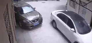 Khoảng 10 giây sau khi người phụ nữ này quay lưng đi, có một chiếc xe ô tô màu trắng đã từ từ rẽ vào làn đường nơi đứa trẻ đang ngồi. Có lẽ do vị trí ngồi của em rơi vào điểm mù của chiếc xe, tài xế không nhìn thấy liền trực tiếp tăng tốc chạy. Bánh trước bên phải của chiếc xe cán ngang người em bé. Nhận ra điều bất thường, người tài xế lúc này đã nhanh chóng dừng xe lại.