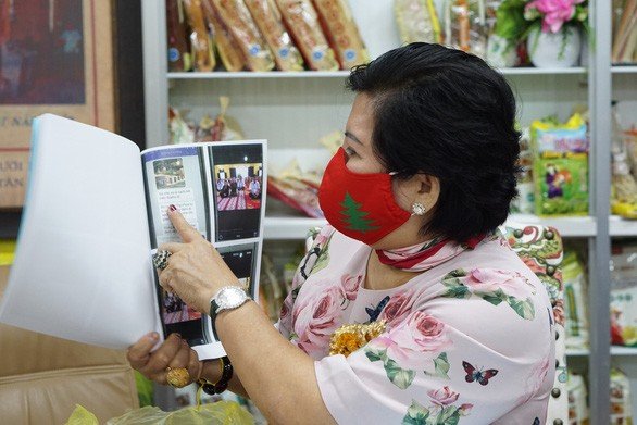 Bà Lê Thị Giàu lập vi bằng về các tin nhắn mà bà Hằng nhắn cho bà - Ảnh: TUYẾT MAI/Tuổi Trẻ.