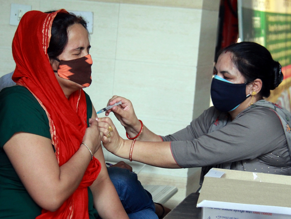 Một người dân tại bang Haryana, Ấn Độ tiêm chủng vaccine Covid-19 (ANI)
