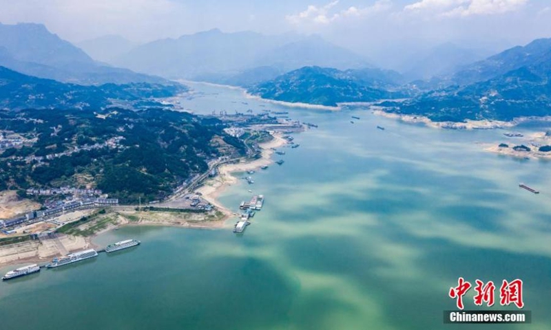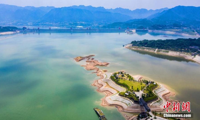 Những hình ảnh mới nhất cho thấy thấy cù lao ở giữa hồ nổi lên rất rõ do mực nước xuống thấp. Đập Tam Hiệp sẽ tiếp tục xả nước để giảm mực nước xuống còn 145 mét trước ngày 10.6, chuẩn bị đón lũ từ đầu nguồn sông Dương Tử đổ về.
