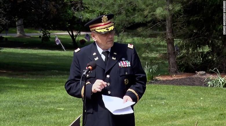 Ông Barnard Kemter phát biểu tại sự kiện Ngày Tưởng niệm 21/5 ở Ohio. Ảnh: Hudson Community Television.