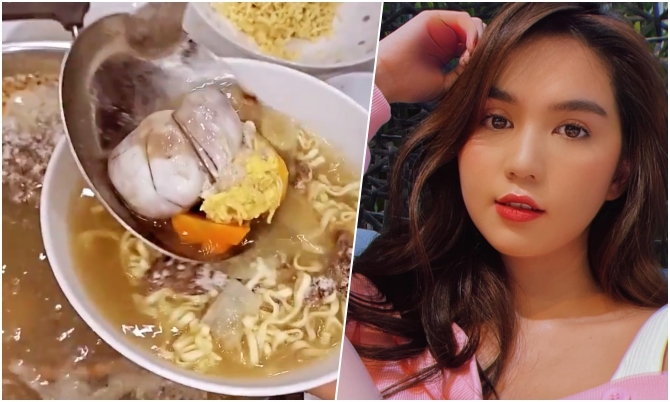 Hôm qua (6/6), Ngọc Trinh mở tiệc lẩu riêu cua tại gia cùng vài người em thân thiết. Nồi lẩu của cô thoạt nhìn thì giống lẩu riêu cua miền Nam, nhưng lại ăn kèm trứng vịt lộn như món lẩu riêu cua bắp bò quen thuộc của người miền Bắc. Thành phần chính của nó là riêu cua đồng và trứng vịt lộn ăn với mì và vài loại rau. Do đó, nữ người mẫu gọi đây là lẩu hột vịt lộn.
