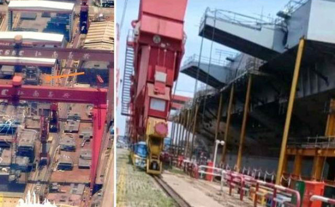 Các bức ảnh mới xuất hiện trên mạng xã hội Trung Quốc hồi tuần trước, theo The Sun. Hình ảnh cho thấy tàu sân bay mới nhất của Trung Quốc đã có hình dạng rõ ràng.